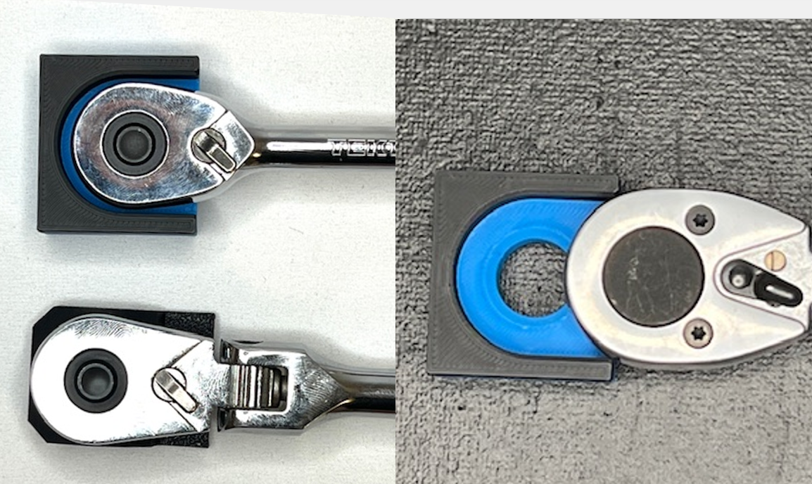 Some alternatives also have “side walls” that wrap around the head of the ratchet. These side walls often do nothing to hold the ratchet in place while making the organizer wider than it needs to be.