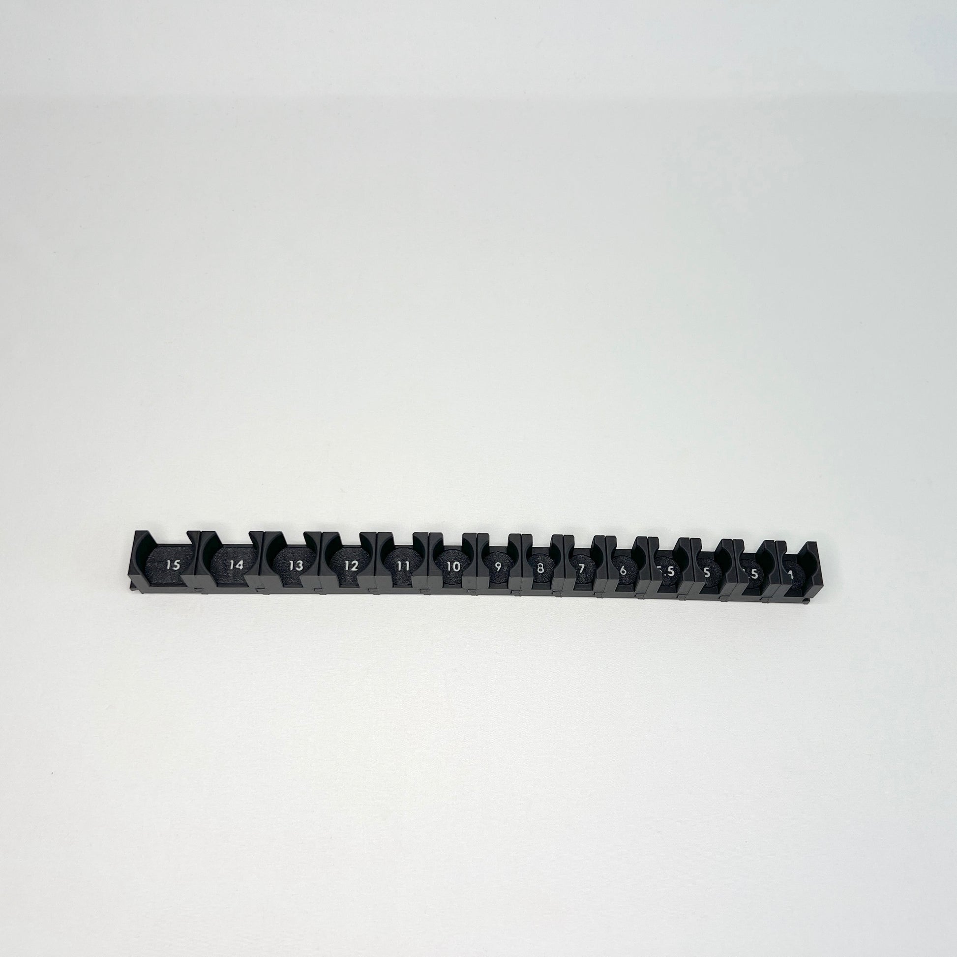 Many socket organizers come in the form of rails or large trays. these organizers work OK, but are prone to wasting space in your toolbox. Rails cannot be adjusted to any specific length to fit your particular socket set. Similarly, one piece trays cannot be enlarged or shrunk to fit your particular socket set. Trays may also include size spaces that you do not use or want wasting space in your toolbox. Our fully modular socket organizers all come with no skip sizing but each size is removable. So, if your socket set skips sizes, you can simply remove that size from the modular organizer to save space in your toolbox.