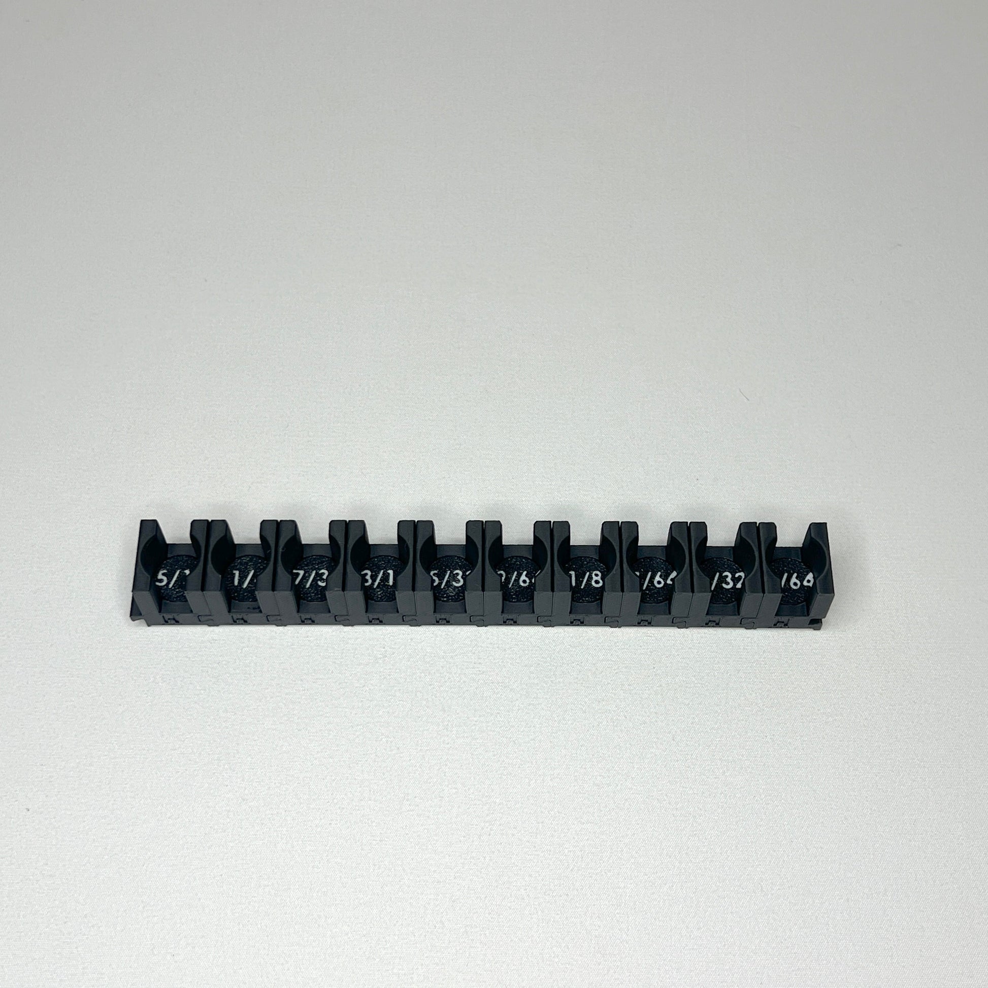 Many socket organizers come in the form of rails or large trays. these organizers work OK, but are prone to wasting space in your toolbox. Rails cannot be adjusted to any specific length to fit your particular socket set. Similarly, one piece trays cannot be enlarged or shrunk to fit your particular socket set. Trays may also include size spaces that you do not use or want wasting space in your toolbox. Our fully modular socket organizers all come with no skip sizing but each size is removable. So, if your socket set skips sizes, you can simply remove that size from the modular organizer to save space in your toolbox.