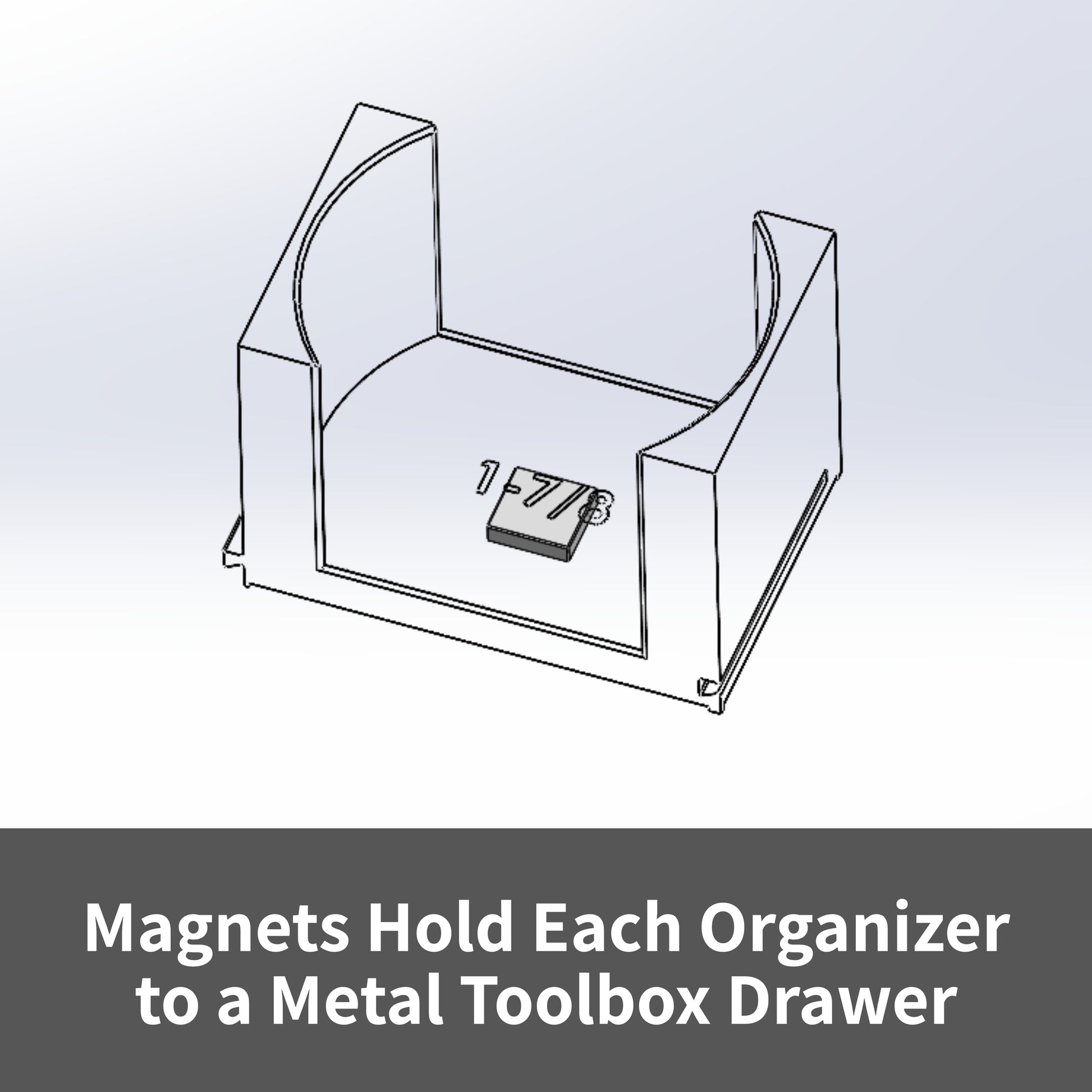 - Optional Magnets Hold Organizer to Metal Toolbox Drawer