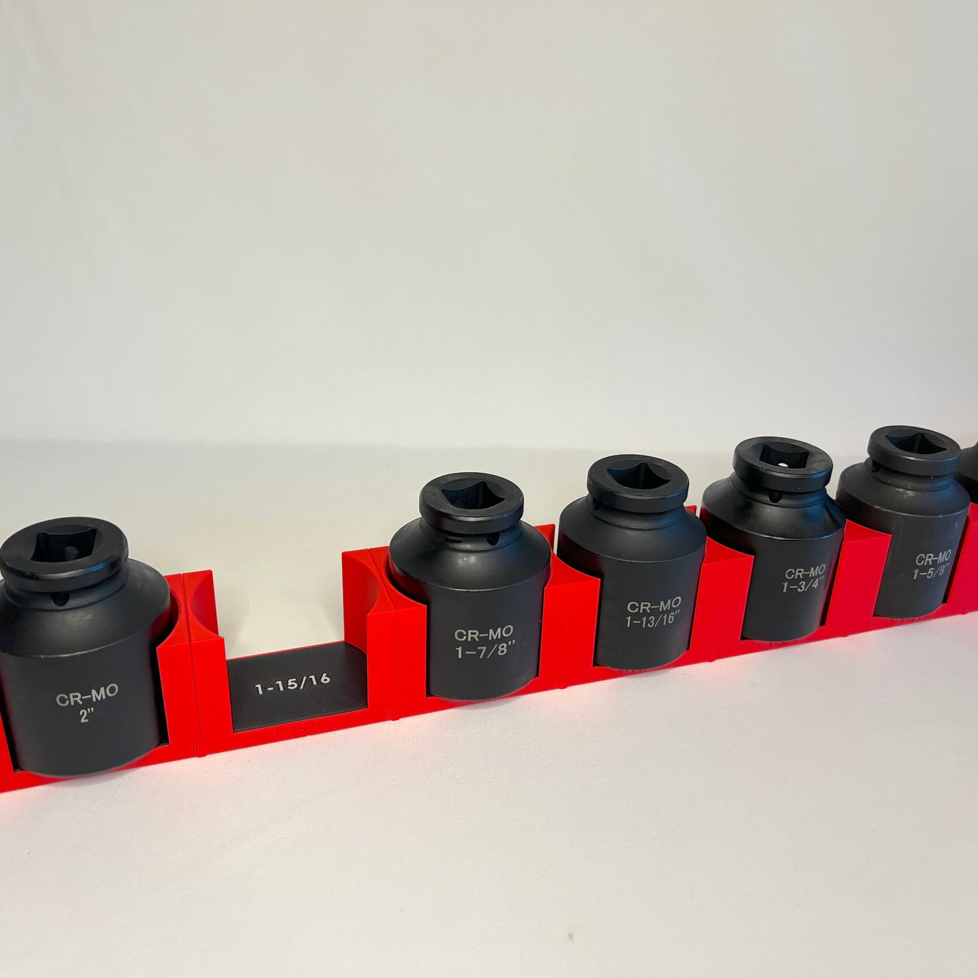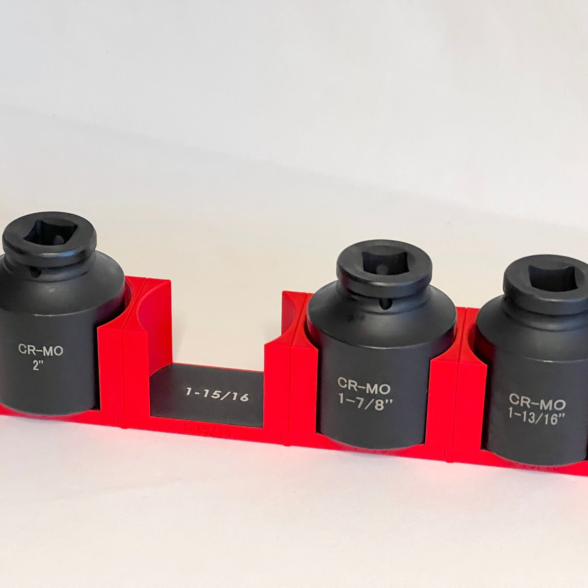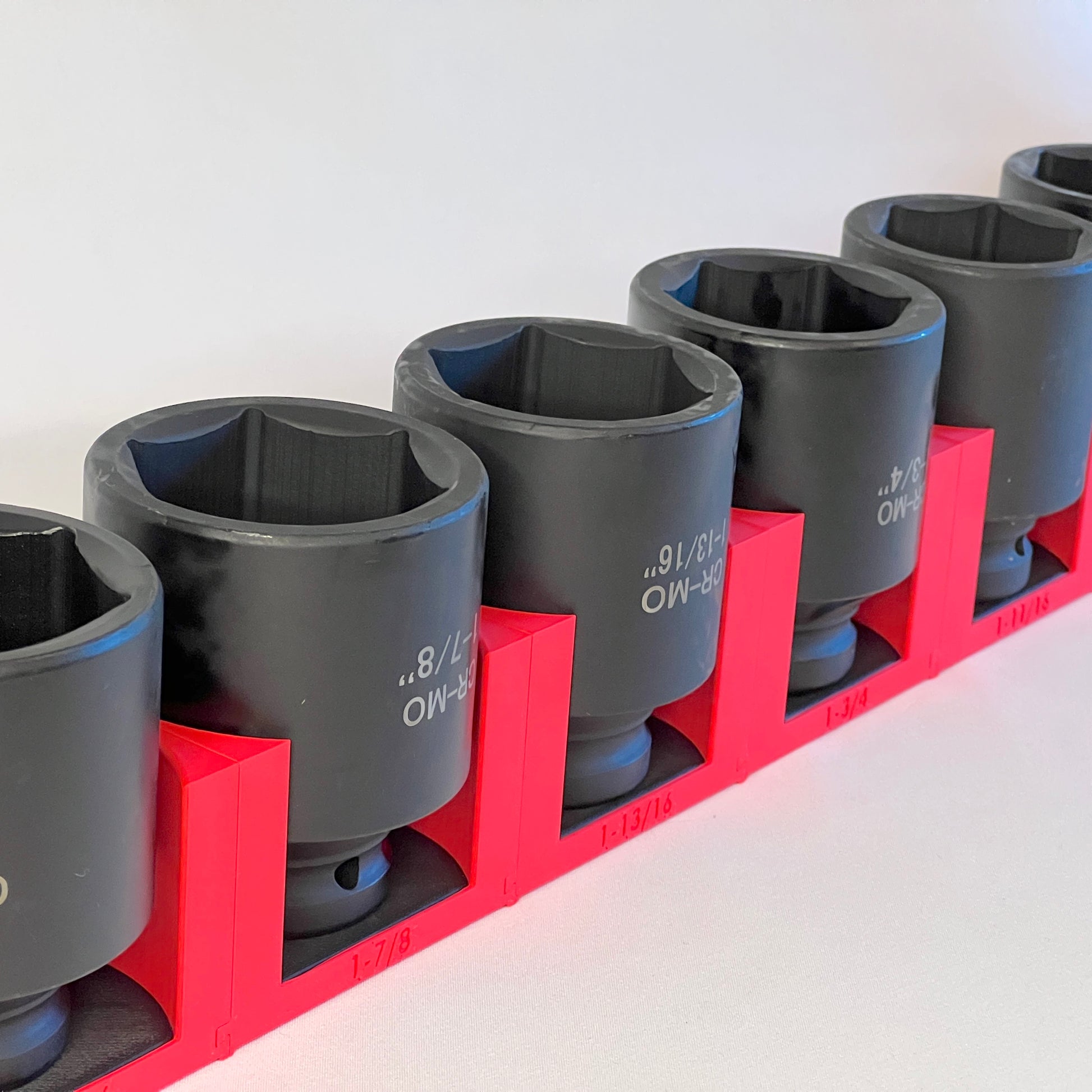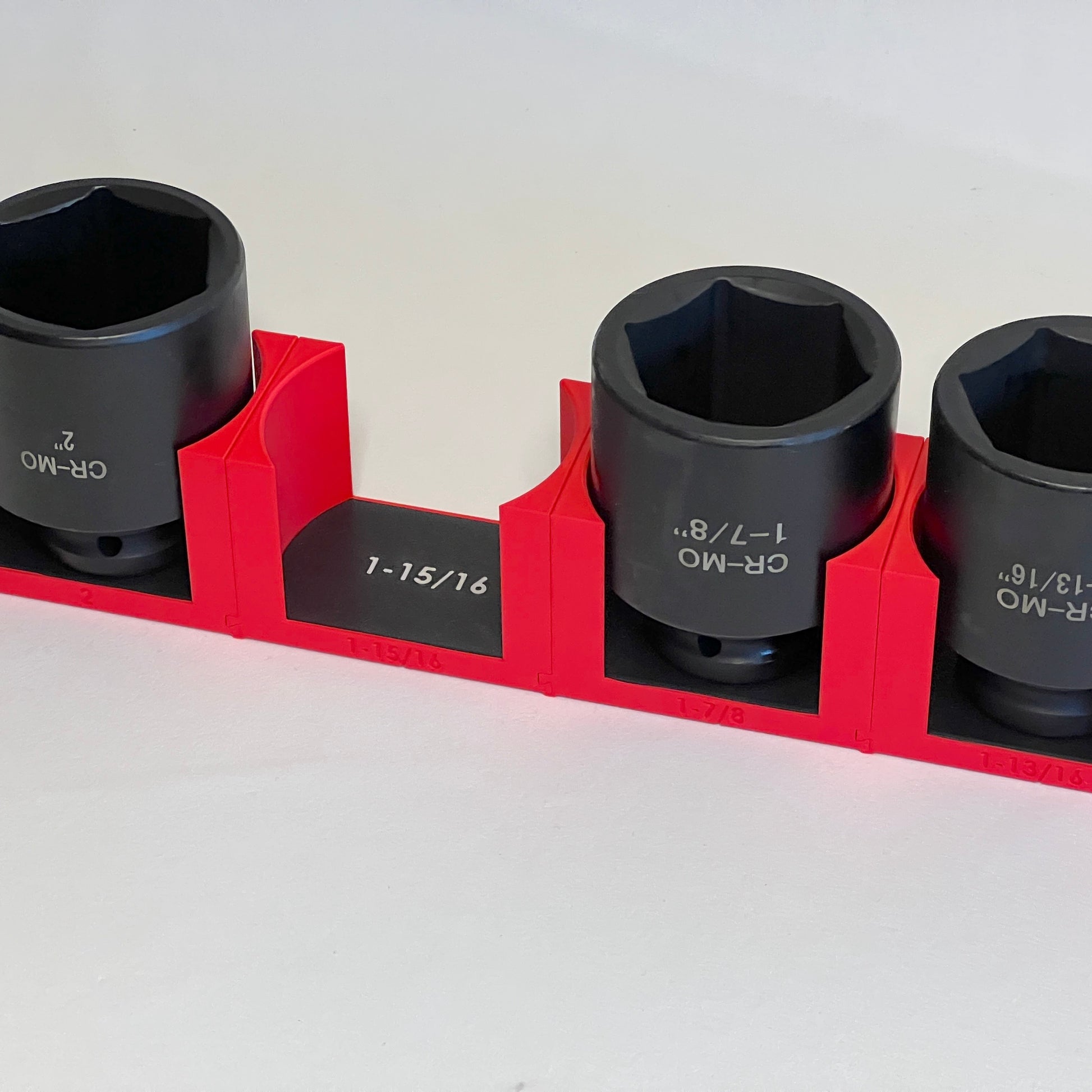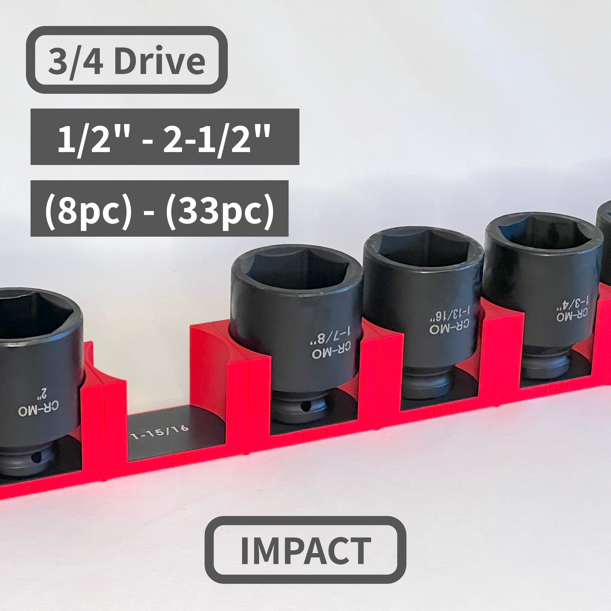 Our modular socket organizers allow you to store any 3/4 drive impact socket set easily while saving space in your toolbox. Each piece in our modular socket organizer is removable allowing you to get a continuous line of sockets, even if your set skips sizes. Each one of our organizers is available with or without magnets. Magnets are intended to hold the organizer to a metal toolbox drawer, not to hold the tool in the organizer.
