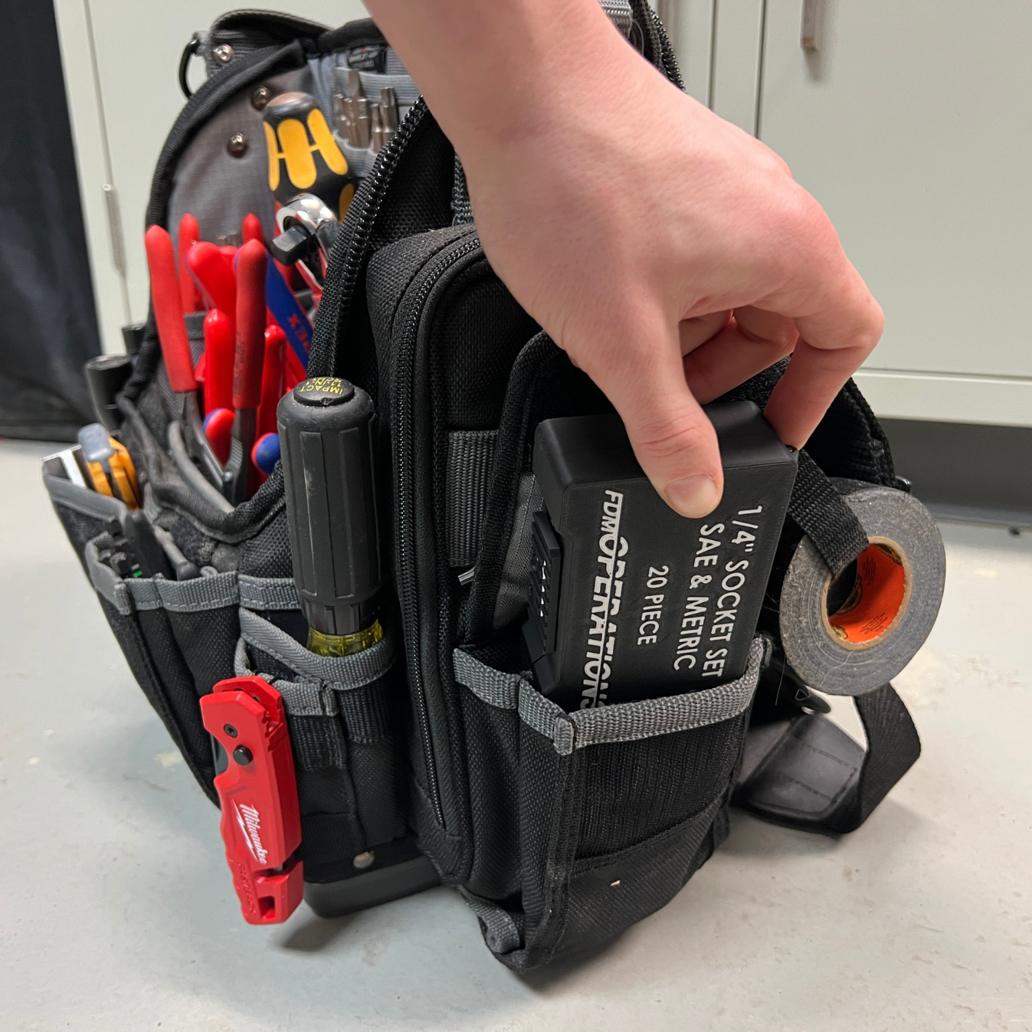 Love the size and quality of this container for my pocket sized tool kit. The only improvement I can think of would be to add thin rubber or foam into the socket pockets and the container cover because the sockets have extra room and make a lot of noise moving inside the container while I'm walking.