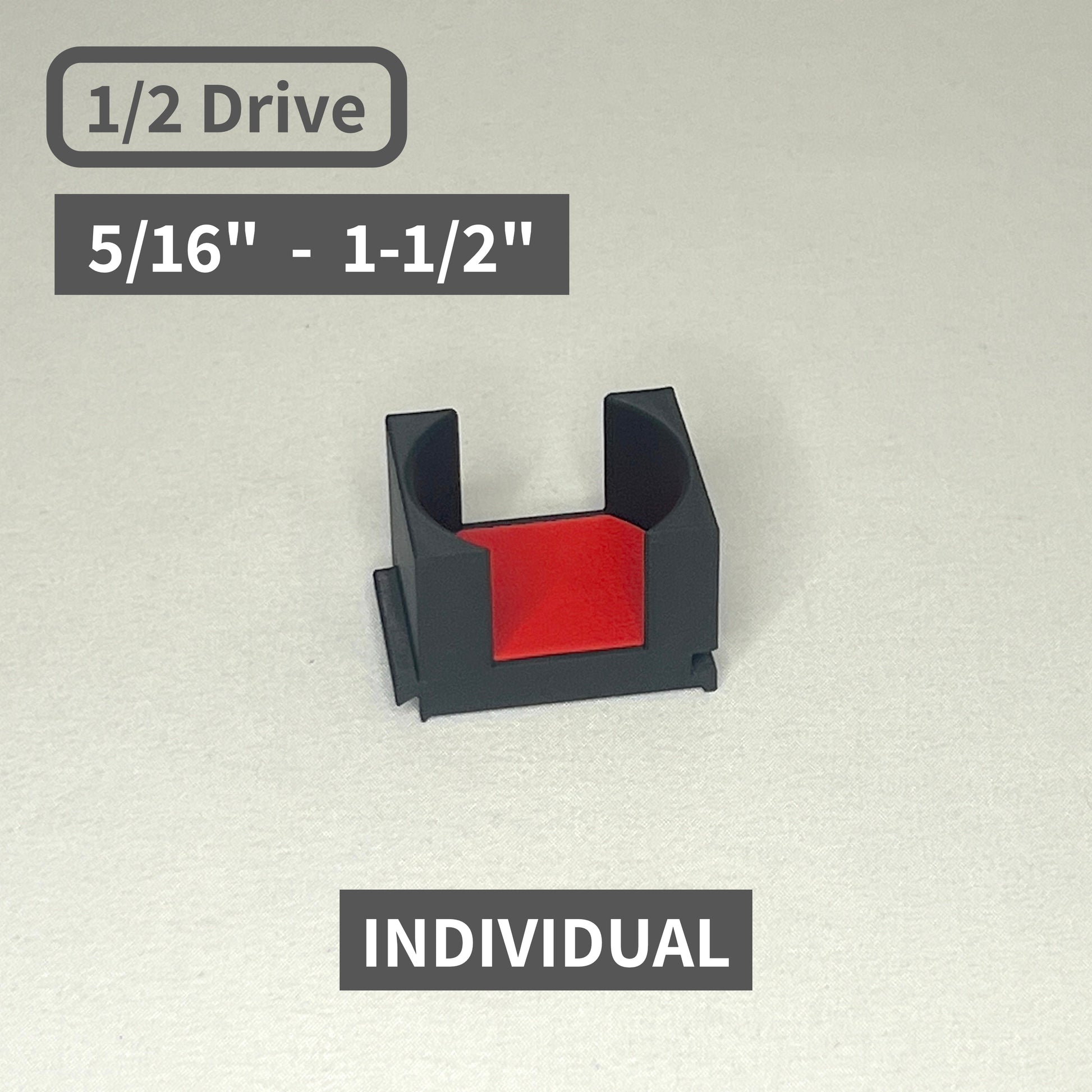 Our 1/2 Drive Modular Socket Organizers can be purchased individually here. Make sure you select the correct size and color scheme. Each piece will come with white label text at the bottom of the organizer to indicate its size. To see what this text will look like, please refer to our full organizer sets.