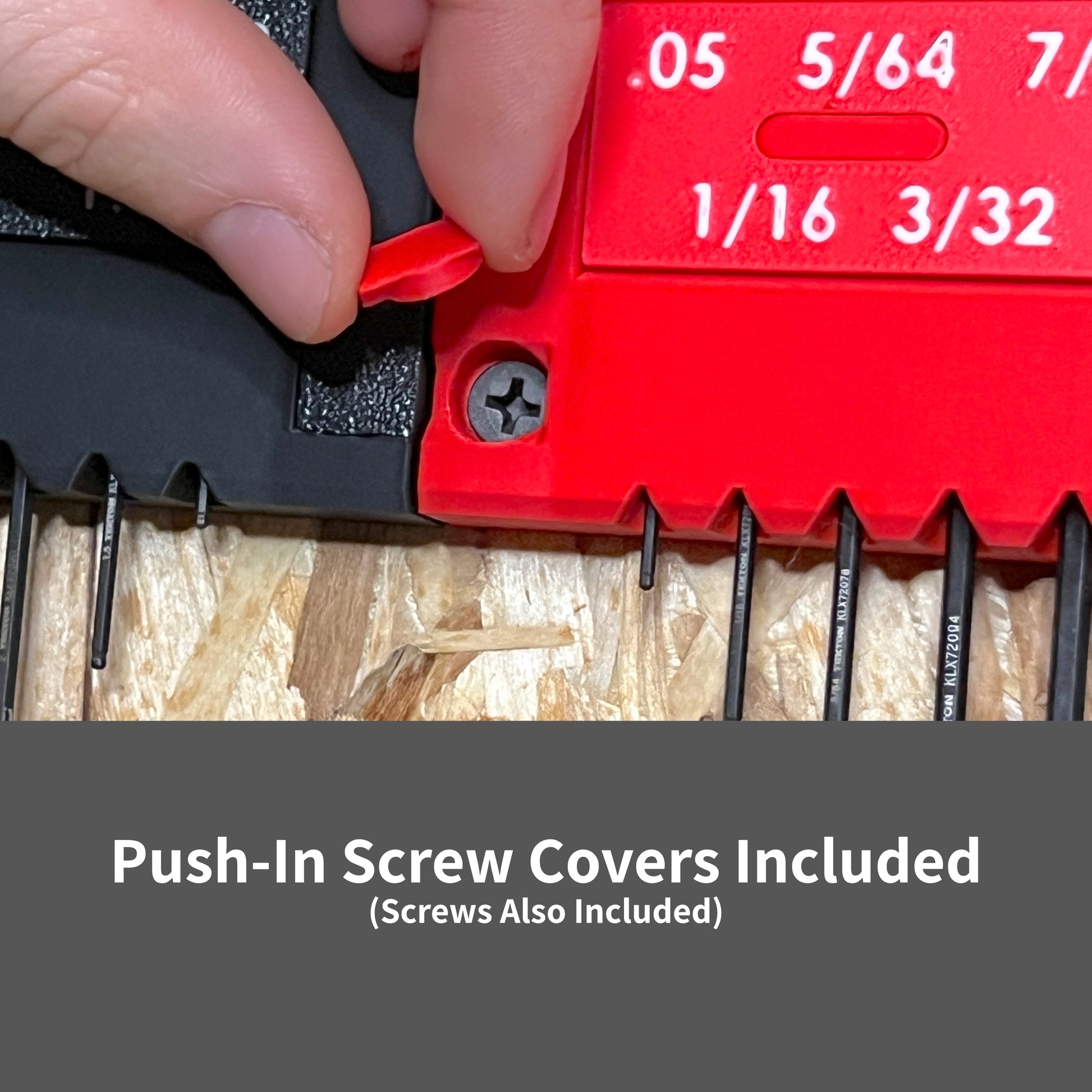 Our wall mount allen key organizers are perfect for mounting most allen key sets to a shop wall or other wood surface. Each slot is sized so that the allen key slides freely in and out and includes a v-grove at the to of the slot to keep your allen keys alligned and pointed outward.